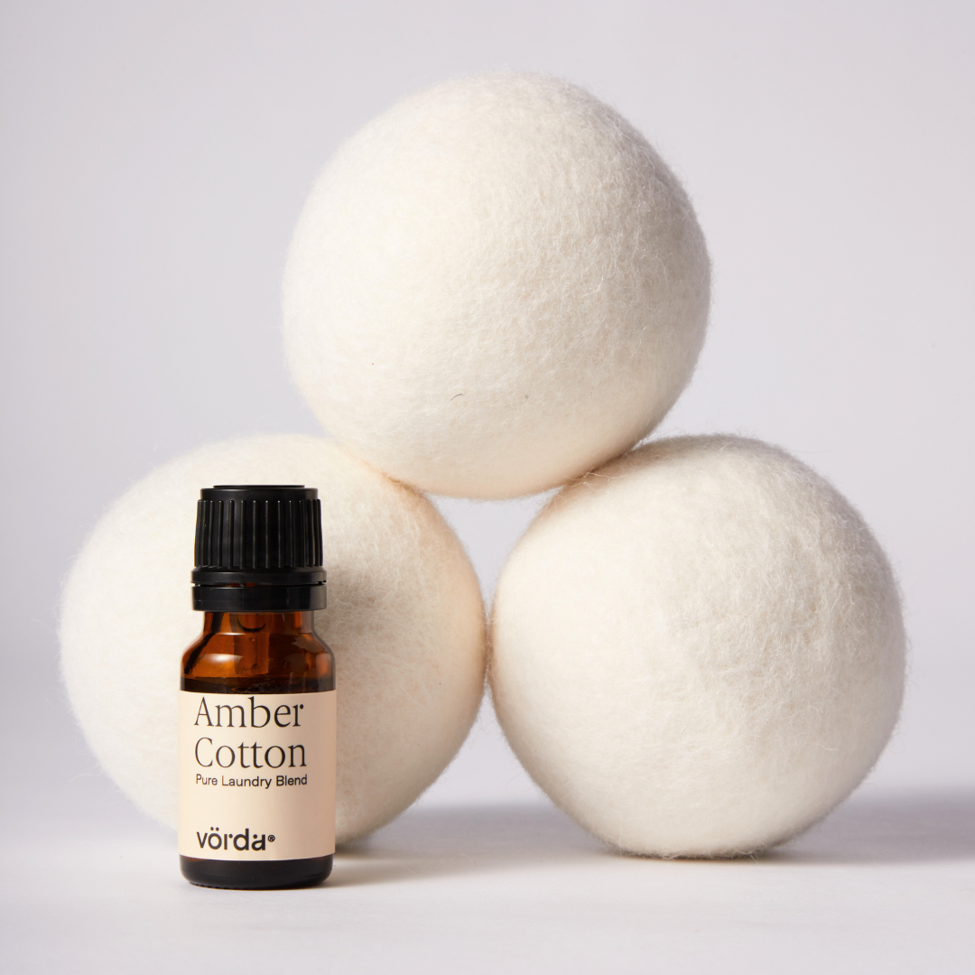 Amber Cotton Laundry Blend warms your fabrics with a cozy glow of sweet citrus and soft spice—an inviting aroma created intentionally for the holiday season. Paired with three premium New Zealand wool dryer balls, this eco-friendly set offers a natural alternative to synthetic dryer sheets. The balanced blend and wool balls help reduce drying time, soften fabrics, and leave behind a warm, uplifting scent that lingers gently on your linens. Bring a touch of golden comfort to your winter laundry ritual.