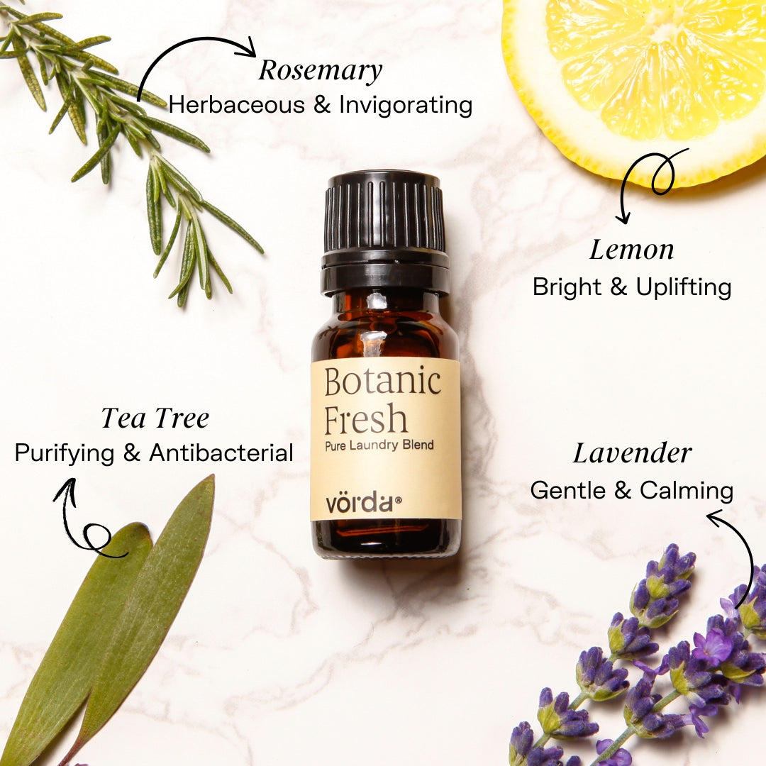Botanic Fresh Laundry Blend wraps your fabrics in a tranquil embrace of lavender and herbal notes, creating a serene laundry experience. Accompanied by three premium New Zealand wool dryer balls, this eco-conscious set offers a natural alternative to synthetic dryer sheets. The carefully crafted blend and wool balls work together to reduce drying time, soften fabrics, and impart a delicate, clean aroma that lingers subtly on your textiles. Transform your laundry routine with a touch of natural, calming botanicals.