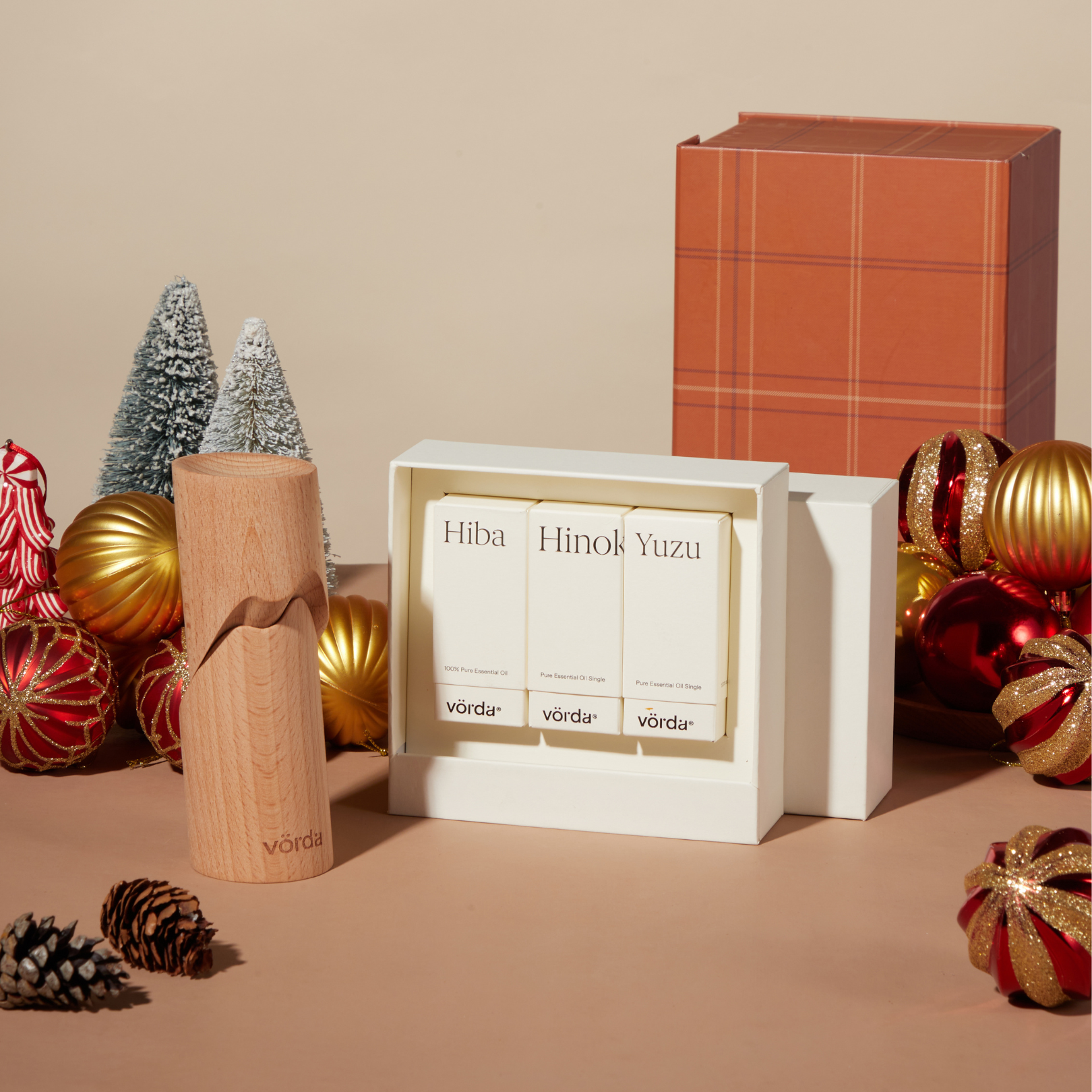 Create your perfect wellness ritual with our most-loved pairing: a natural wood diffuser and a trio of pure essential oils tailored to your mood. Whether you’re gifting or treating yourself, this bundle offers timeless design and scents that speak to your soul.