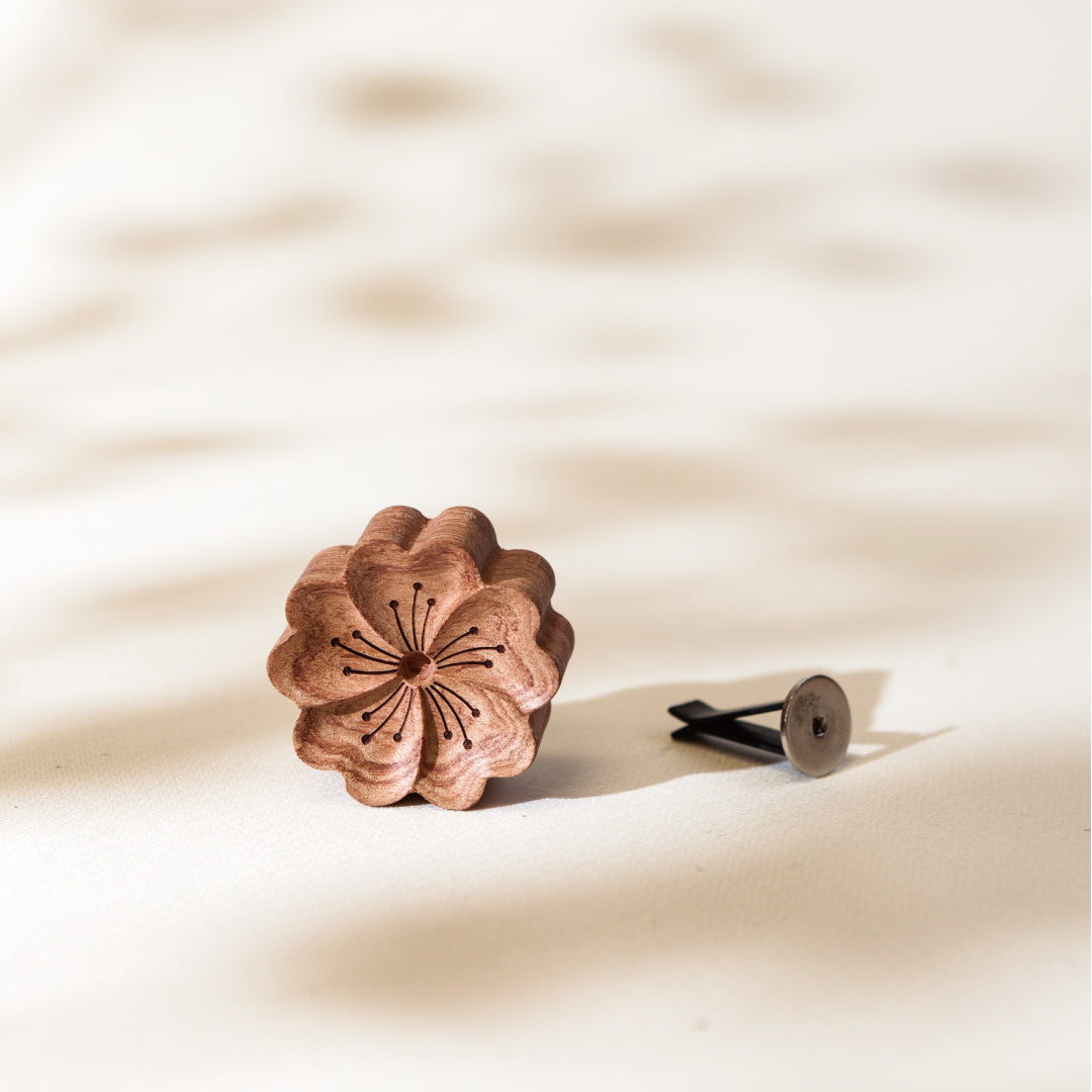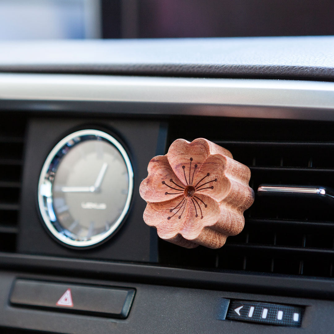 Attach clip to air conditioning vent. Drop few drops of essential oil on the middle of the blossom. Allow 30 seconds for absorption.Attach wood blossom’s back magnet to vent clip and allow the scent to be dispersed in the car.