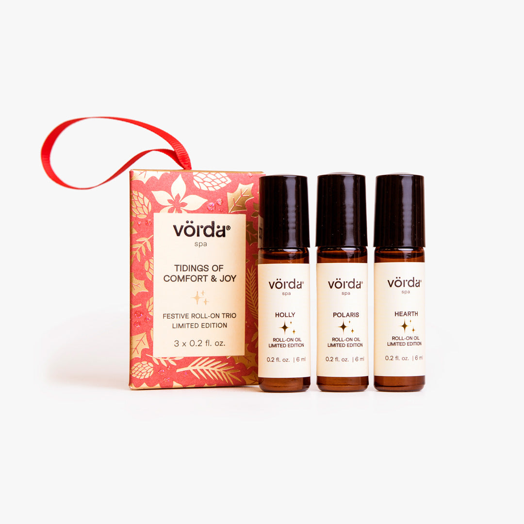 Discover the essence of the holidays with this limited-edition roll-on set. Featuring Holly to help you relax and unwind, Polaris to recharge your energy, and Hearth with its warming ginger scent to bring cozy comfort, this trio is crafted to bring you balance during the busiest season. Perfect for gifting or personal indulgence, each scent evokes warmth, joy, and tranquility.